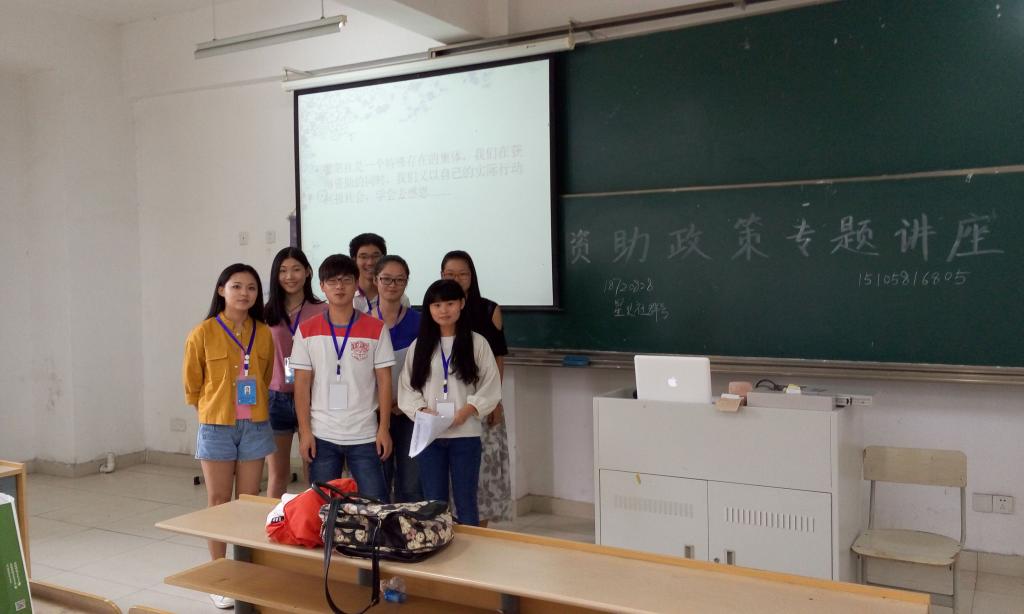 为宣传国家资助政策,帮助真正有困难的同学顺利完成学业,9月22日中午,临江学院学工办徐贤老师在6222教室举行学生资助政策宣传讲座,馨阳社全体干事和2015级部分新生到场参加。