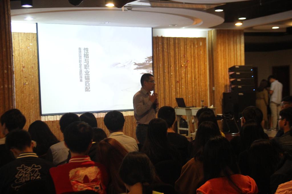 刘老师以幽默的语言开场,带动了全场的气氛,一个个犀利的问题为同学们开启了来自内心深处的感悟,一个个经典的例子更生动地阐述了性格与职业的关系,使同学们理解了职业与性格的关系,为今后做出更适合自己的职业选择提供了参考。