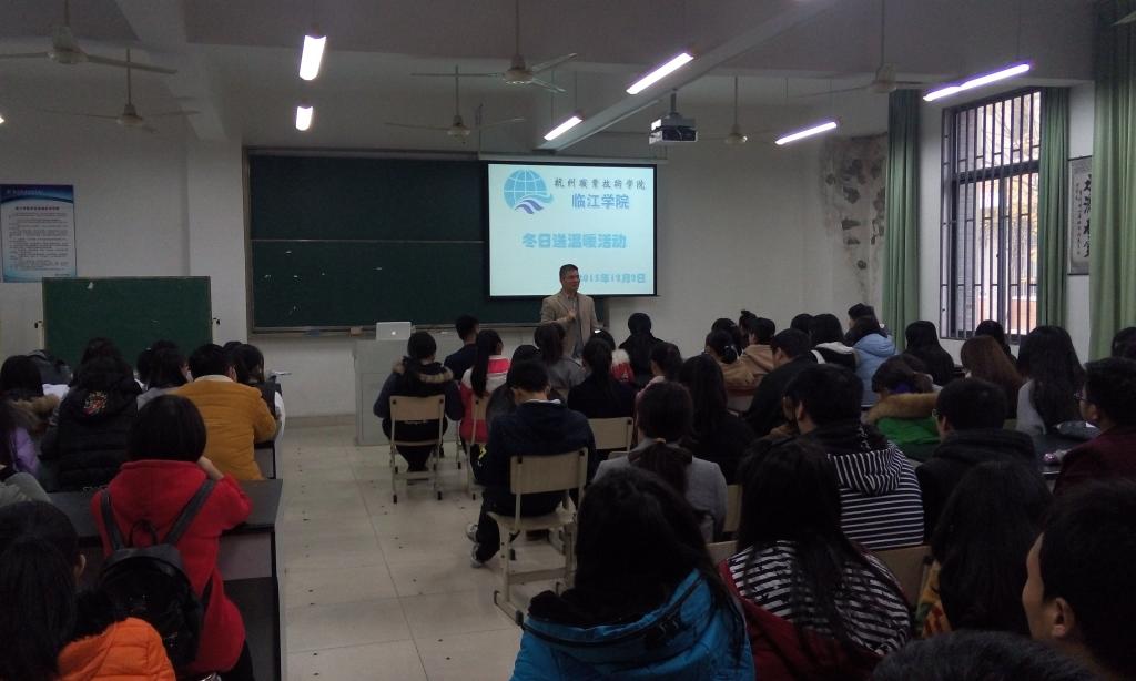 12月2日下午3点,临江学院馨阳社在6126教室开展了“冬日送温暖”活动。临江学院党总支副书记周佳良对到场的同学给予了最亲切的问候和最诚挚的祝福,他希望可以通过本次活动给临江学院的家庭经济困难学生们带来一丝暖意。他以自身孩提时的经历告诫同学们,要想成就不平凡的自己必须要通过自己的双手努力来创造,好好读书和勤工助学可以改变眼下的困难。在教育同学们积极锻炼、努力学习、认真做事的同时,周书记还教育到场的同学们要学会做人,懂得感恩,在接受关爱的同时也要心怀感激去回报社会,让爱心传递下去。