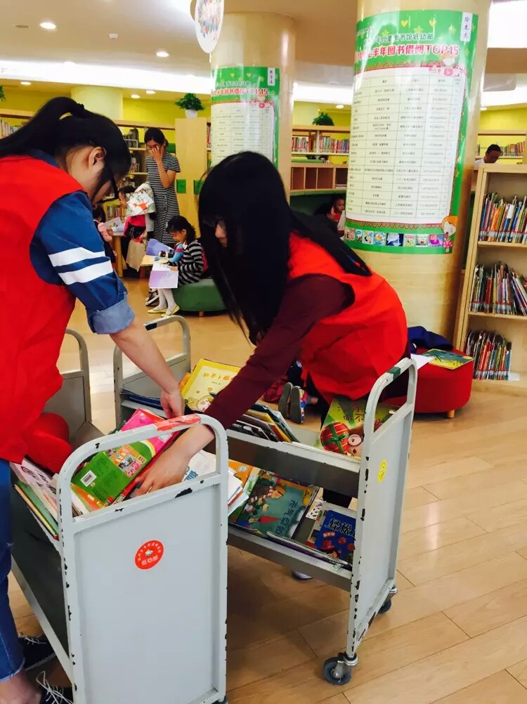 经过简单的培训,志愿者们被分配到少年部、儿童部、低幼部和综合办等不同岗位开始工作。由于今天图书馆到了一批新书,所以大家都格外忙碌,除了常规的图书归位,书架整理和咨询服务外,还要要及时把新书上架。面对家长和小朋友的求助,志愿者也都给予了耐心的解答和帮助。