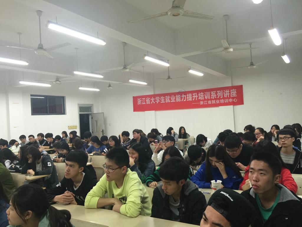 张培老师从“我是谁-认识自我”、职场探索、“我的生涯-我做主”三个方面,为同学们分析了兴趣、性格、能力和价值观对职业生涯的影响;揭秘了企业对人才的需求;介绍了面试实用技巧和简历制作的方法等。最后,她引用了冰心的一句话作为给同学们的寄语:“青年人!相信自己吧!只有你自己是真实的,也只有你能创造自己。”