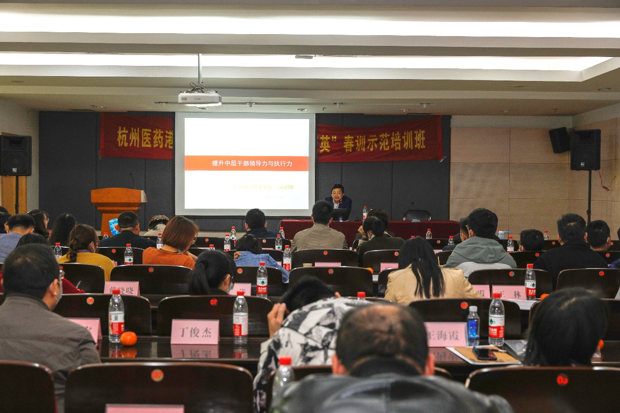 由杭州医药港和综保办党工委与我校生态健康学院联合举办的基层党组织“红企精英”春训示范培训班于2021年4月9日-10日顺利举行。来自医药港和综保办共38个企业党组织的支部书记、党务工作者和优秀党员共71人参加了本次培训。生态健康学院第一党支部承担了组织工作,支部书记陈郁担任培训班负责人。
