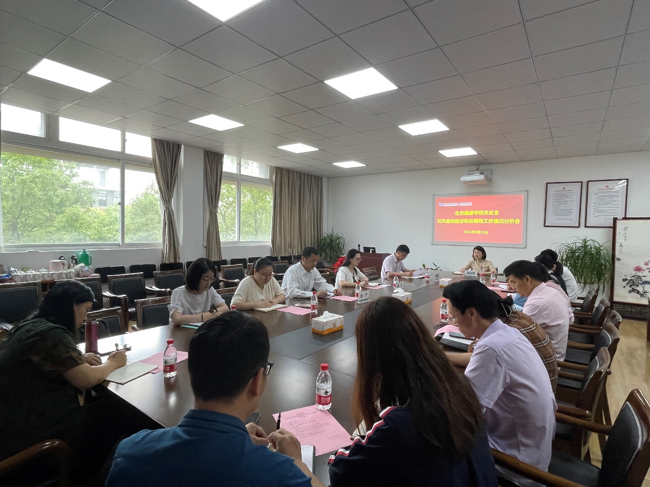 6月15日上午,生态健康学院党总支在生态西2203会议室召开2022年上半年党风廉政建设和反腐败工作情况分析会。校党委委员、副校长金徐伟出席会议,分院党总支书记、院长童国通主持会议,党总支全体委员、分院全体科级干部、支部书记及专业负责人参加会议。