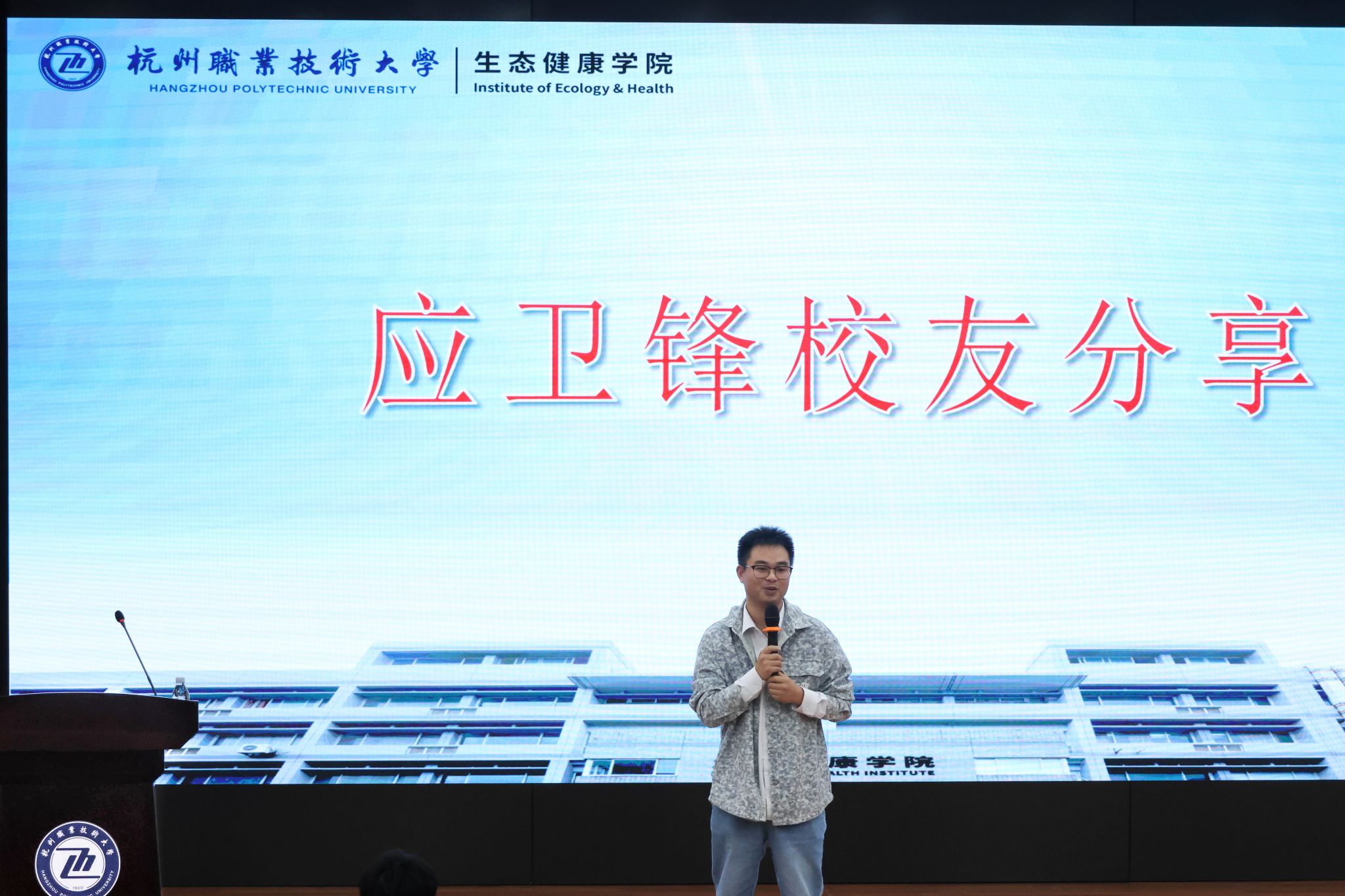 10月29日,生态健康学院09届药物制剂专业校友应卫锋、19届食品与营养检测专业校友陈庆涛来校开展职业规划讲座。学工部、生态健康学院负责人,生态健康学院三百余名学生共同参加活动。