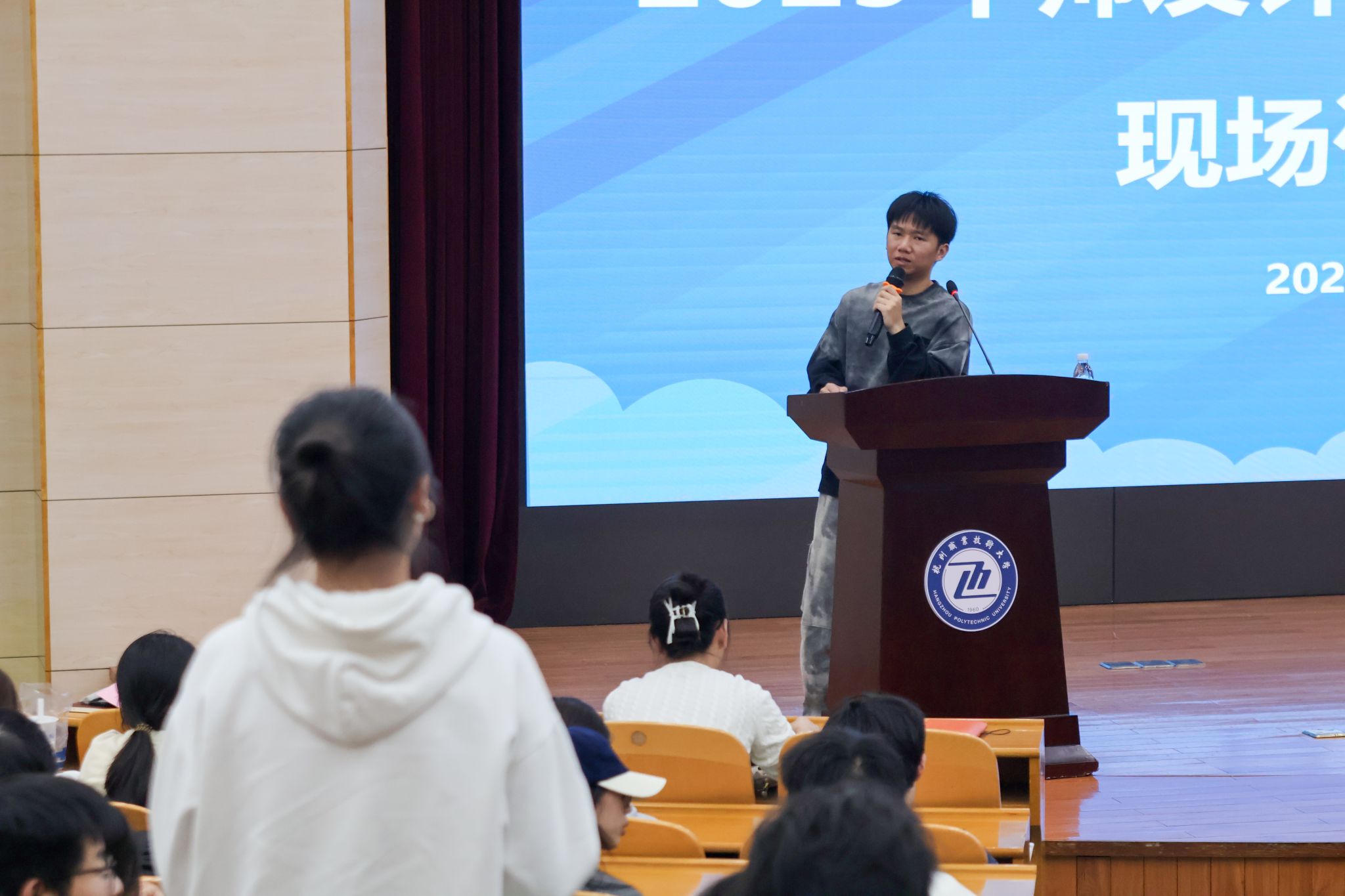 在交流环节,两位校友就同学关心的问题给予了细致解答。如对于“如何获取行业最新招聘信息和技能需求”的问题,应卫锋建议同学们关注行业权威平台,定期浏览培养行业敏感度;就“在校参加技能竞赛的注意点”,陈庆涛特别强调:“竞赛的真正价值不在于获奖证书,而在于各赛过程中培养的系统思维能力和团队协作精神。”校友们精彩的回答多次赢得同学们的掌声。