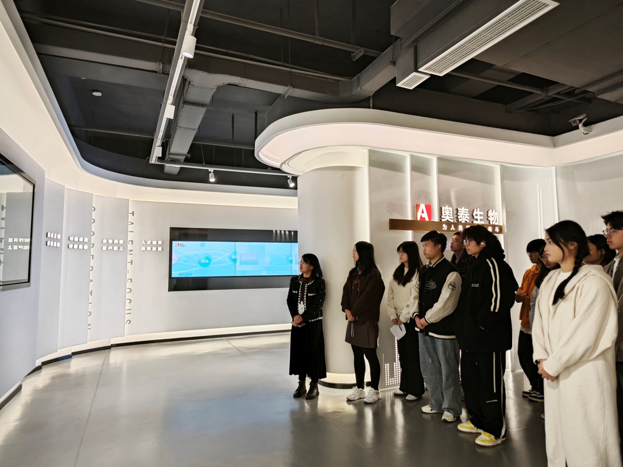 11月19日,生态健康学院团总支组织第六届“青苗计划”干部培训班学员走进杭州医药港,实地探访园区企业杭州奥泰生物技术股份有限公司,通过“听讲解、看生产、悟发展”的沉浸式体验,让学员们近距离触摸医药产业脉搏,明晰职业成长方向。