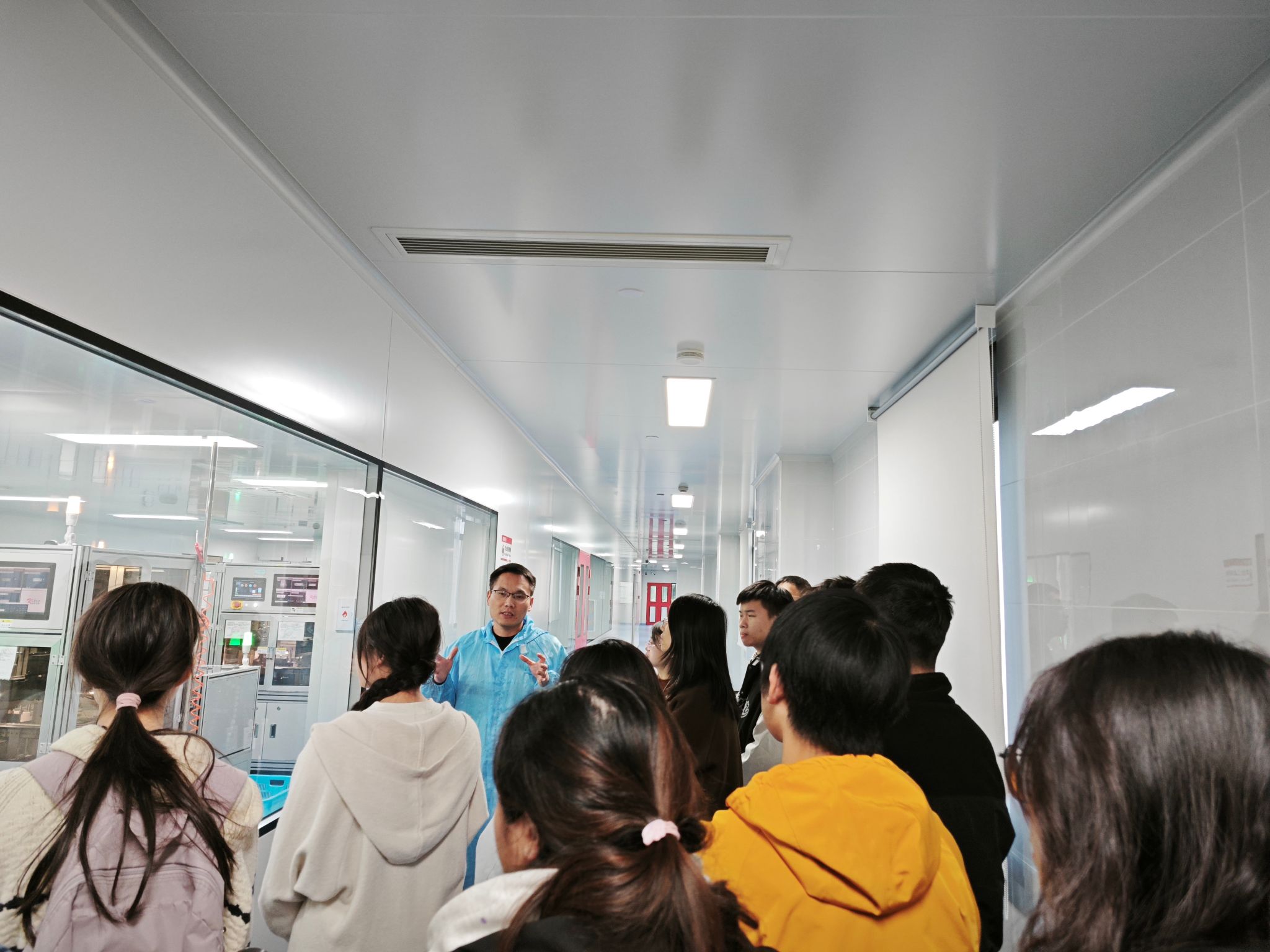 随后,生产部赵主管带领学员有序进入企业生产车间,探索试剂盒的“诞生之旅”。赵主管围绕原料纸片筛选、多道精密工序加工、产品质量检测及规范包装等环节,详细讲解生产流程中的关键要点与质量标准。学员们认真观察生产操作,不时提出疑问,现场学习氛围十分热烈。