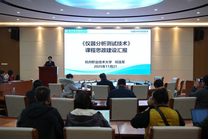 在课程思政成果经验交流环节,我校环境监测技术专业负责人何连军教授交流分享了国家在线精品课程《仪器分析测试技术》课程思政的建设经验和成果。