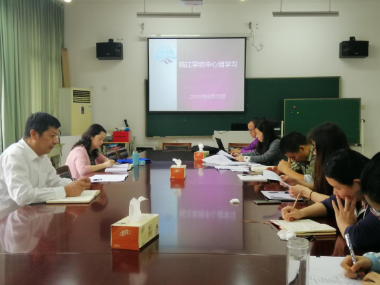 4月22日临江学院党总支中心组学习在6240召开。分院全体科级干部参加了本次学习,活动由党总支副书记胡严主持。认真贯彻落实杭职院第二次党代会精神,深入学习《中共杭州职业技术学院委员会工作报告》、《中共杭州职业技术学院纪律检查委员会工作报告》,认真学习《中共杭州职业技术学院委员会关于落实意识形态工作责任制实施办法》、关于做好防范和抵御校园宗教渗透工作的相关文件精神。本期中心组学习重点发言人:陈郁、王蓉、王晓磊。