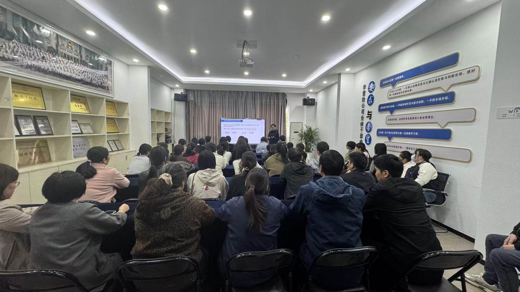 培训课表安排紧凑且内容充实。11 月 11 日,于文博老师率先开启培训,在企业会议室为员工讲解 “制药设备的 GMP 管理” 与 “制药设备的验证” ,从法规标准到实操要点,帮助员工筑牢设备合规操作基础。11 月 12 日,朱军老师通过线上形式,传授 “颗粒剂制备技术”“片剂与胶囊剂制备技术” ,结合实际生产案例,解析制剂工艺关键环节 。13 日,于文博老师继续线上授课,聚焦 “生物药物生产工艺” ,剖析生物制药流程;陈郁老师则带来 “制剂分析技术” ,强化员工质量检测意识。14 日,陈郁老师深入讲解 “色谱分析检测技术”“光谱分析检测技术” ,助力员工掌握精准检测手段。