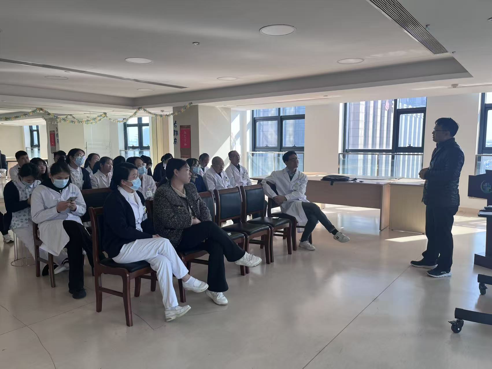 为保障培训效果,本次课程采用 “理论讲解 + 案例分析 + 互动答疑” 的教学模式,授课地点就近设置在和禾医院,方便医生们兼顾工作与学习。培训期间,学员们严格遵守课堂纪律,提前 10 分钟到场签到,全程专注投入,积极与授课老师交流临床研究中的写作困惑。大家纷纷表示,课程内容针对性强、实用性高,有效解决了自身在学术论文写作中的痛点难点,为今后开展临床科研、发表高水平论文奠定了坚实基础。